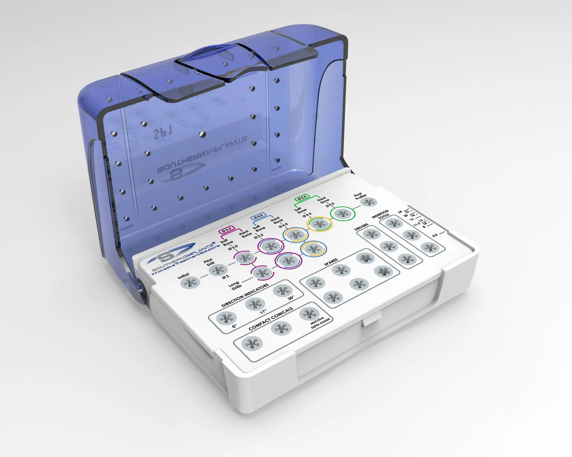 Les trousses prothétiques Southern Implants regroupent l’ensemble des composants nécessaires à la réalisation de vos restaurations, avec un agencement pensé pour une utilisation fluide et un montage rapide au fauteuil.